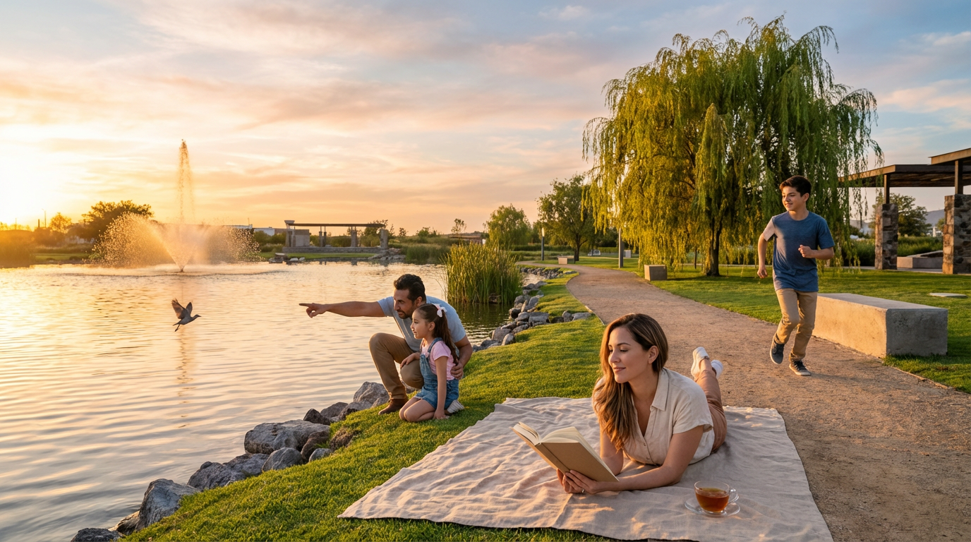 Más de 5,000 m² con andadores, caminamientos, árboles adultos nativos, arbustos y setos resistentes al clima de Querétaro. No es solo paisaje: es calma, sombra, frescura y conexión cotidiana con la naturaleza.